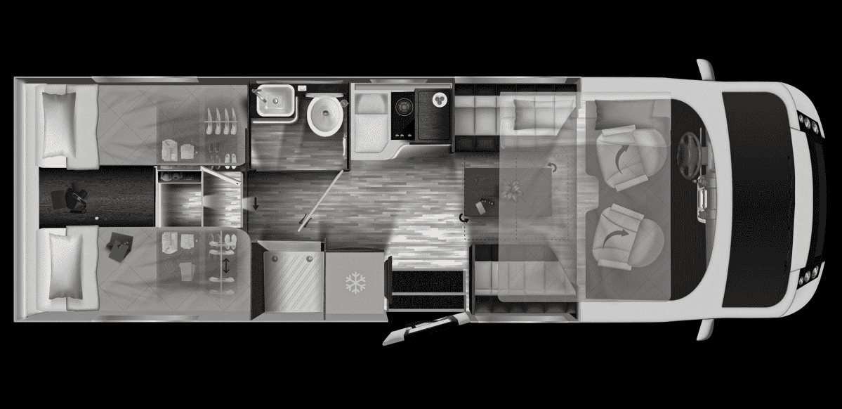 - tankovací systém ALU 2x 11kg, revízia plynu, mechanické pätky, Duocontrol, klimatizácia Gree, AMS, solárny panel 2x 175 W, Liontron 200 AH lítiová batéria, menič 3KW buttner so 120 A nabíjačkou.
